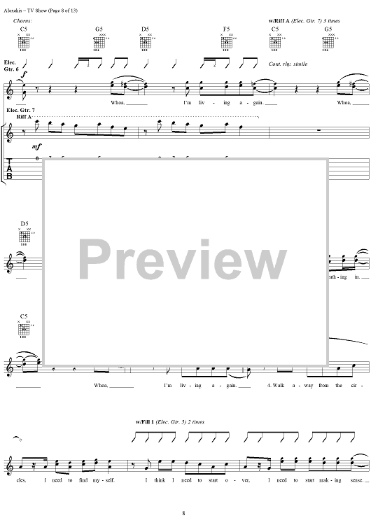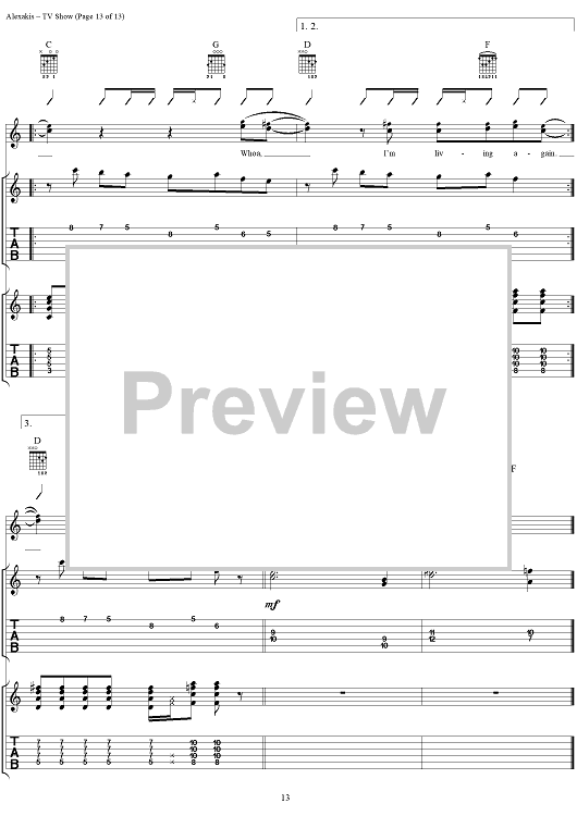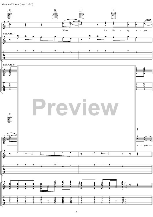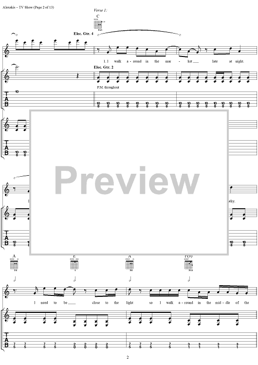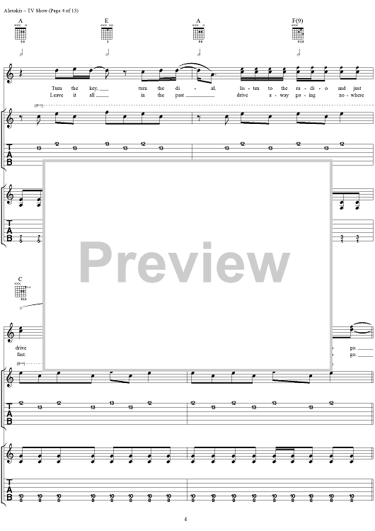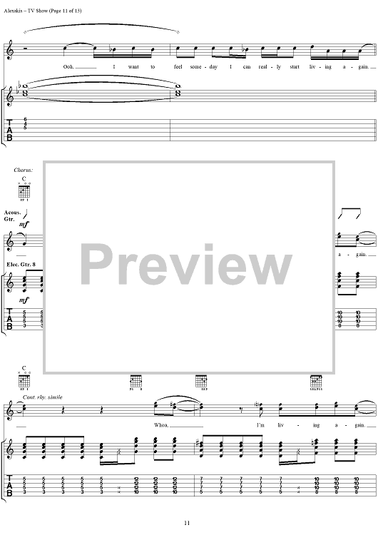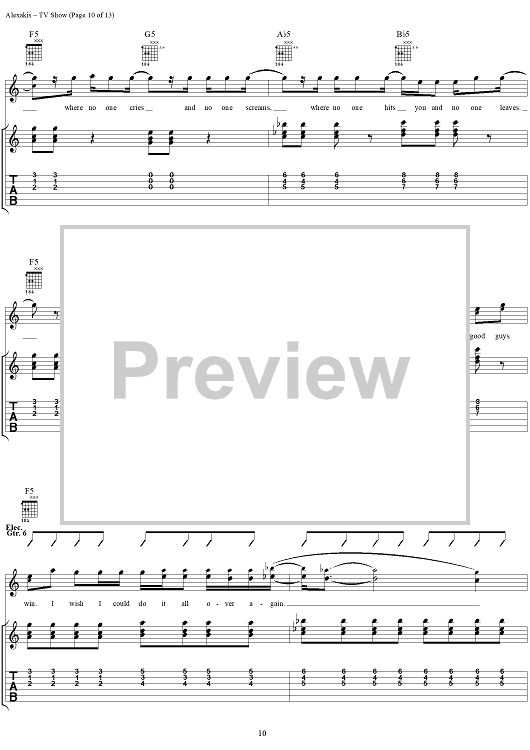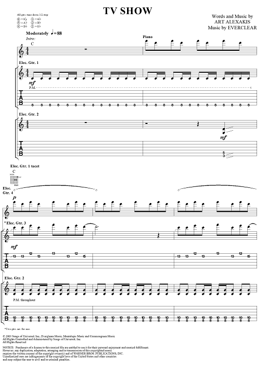 Digital Sheet Music for TV Show by Everclear, Art Alexakis scored for Guitar Tab/Vocal; id:303012