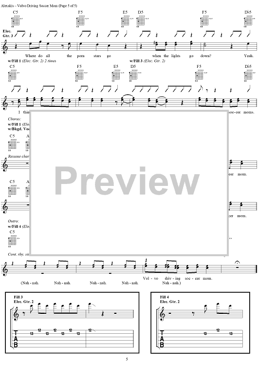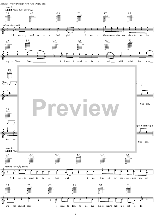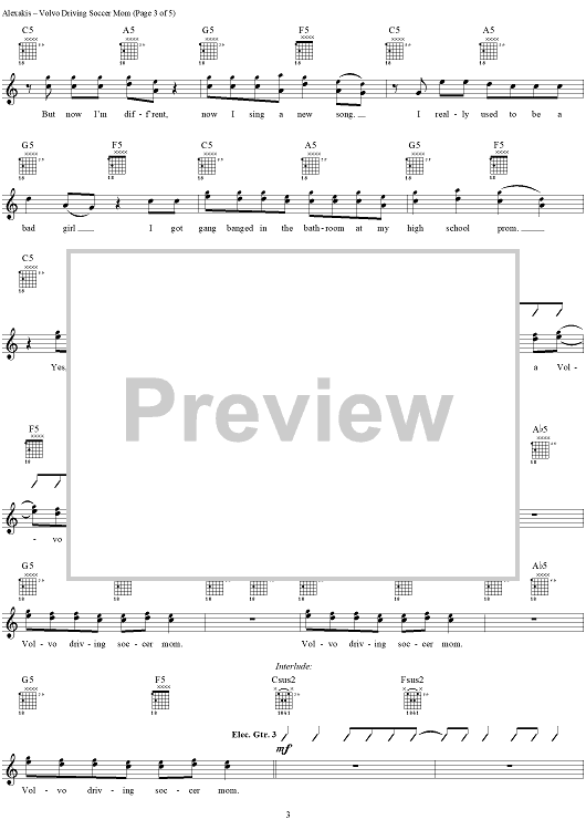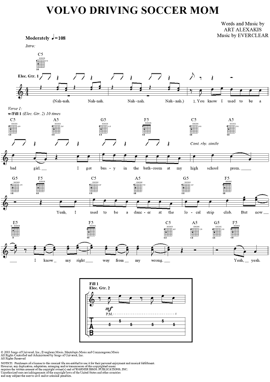 Digital Sheet Music for Volvo Driving Soccer Mom by Everclear, Art Alexakis scored for Guitar Tab/Vocal; id:303009