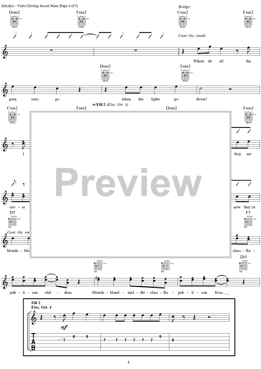 "Volvo Driving Soccer Mom" Sheet Music by Everclear