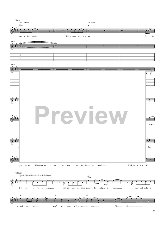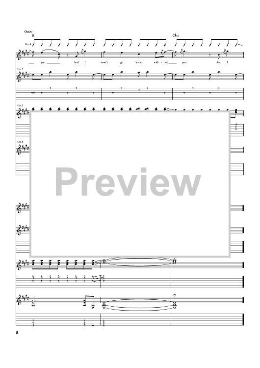 Digital Sheet Music for Won't Go Home Without You by Adam Levine, Maroon 5 scored for Guitar Tab; id:401096