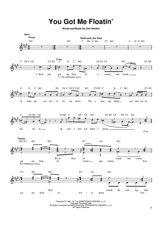 Digital Sheet Music for You Got Me Floatin' by Joan Jett, Jimi Hendrix, P.M. Dawn scored for Lead Sheet; id:374329