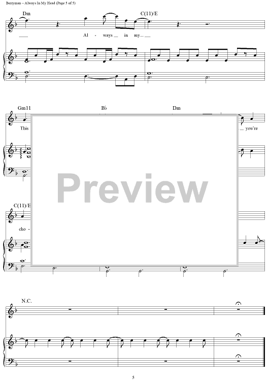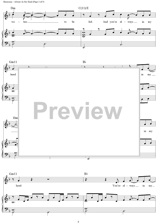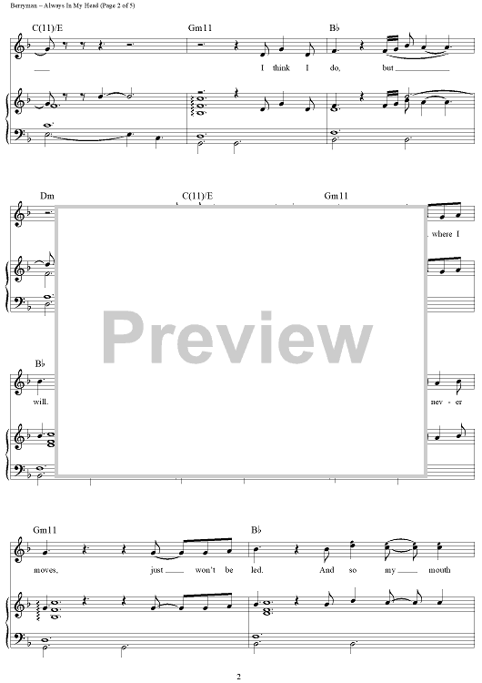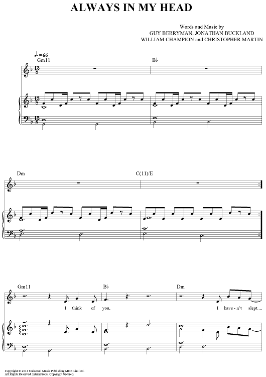 Digital Sheet Music for Always In My Head by Chris Martin, Coldplay, Jonny Buckland, Guy Berryman scored for Piano/Vocal/Chords; id:444897