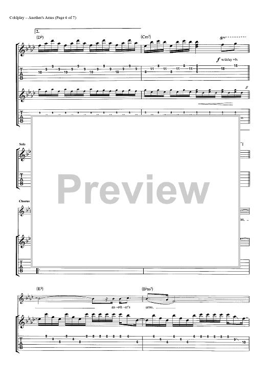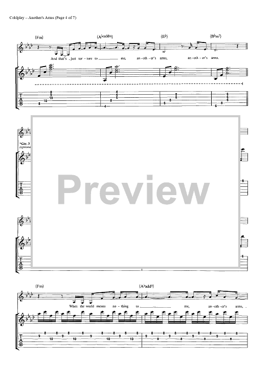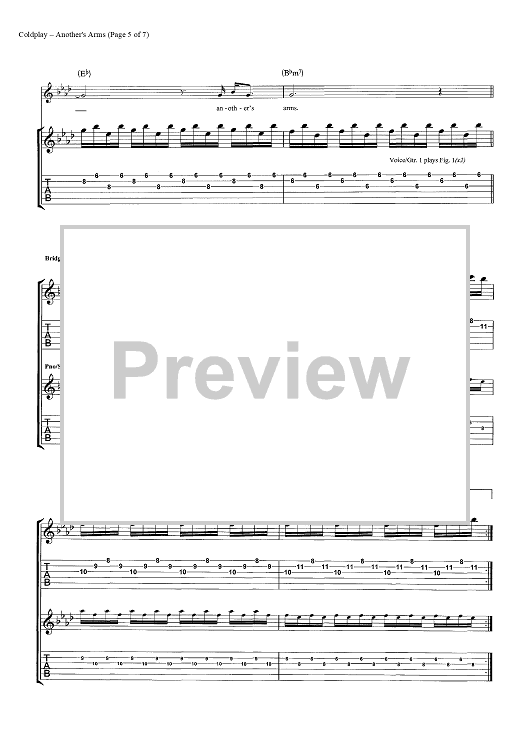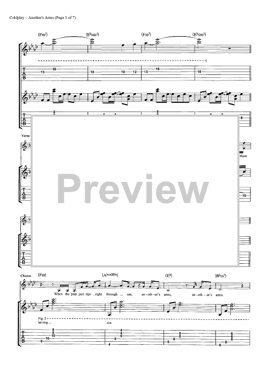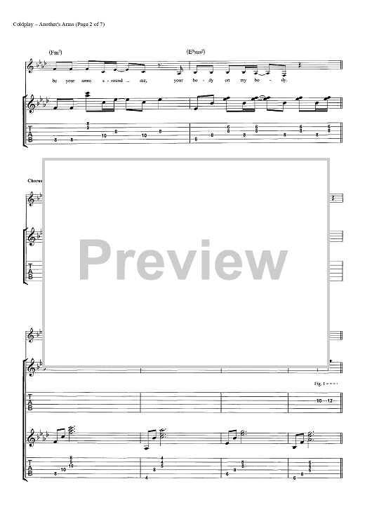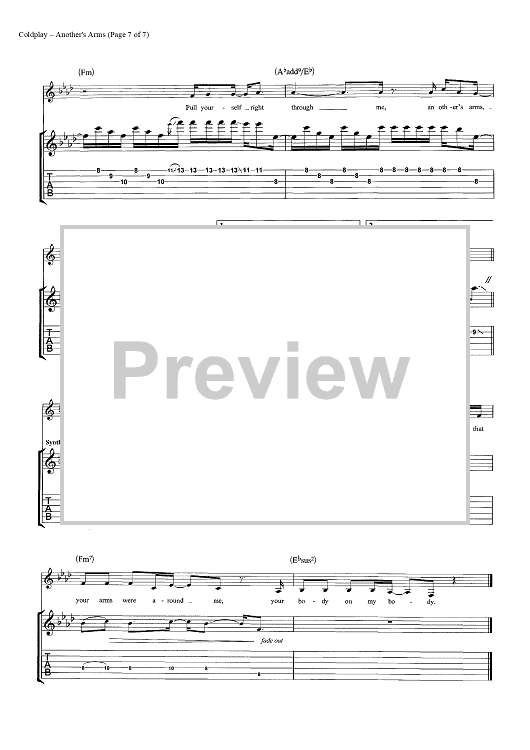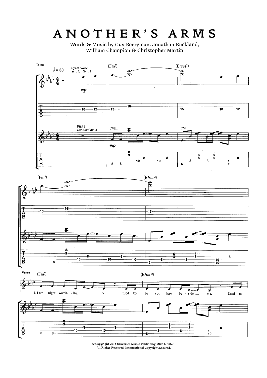 Digital Sheet Music for Another's Arms by Chris Martin, Coldplay, Jonny Buckland, Guy Berryman scored for Guitar Tab; id:444610