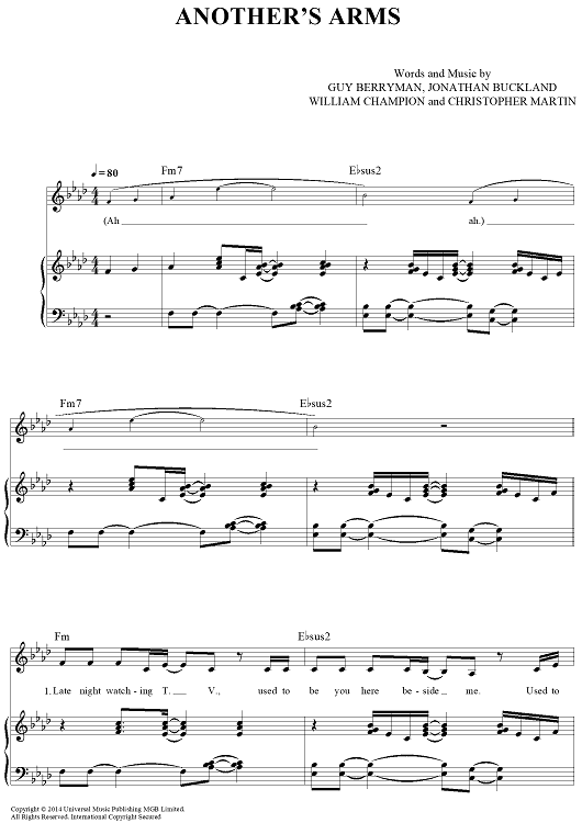 Digital Sheet Music for Another's Arms by Chris Martin, Coldplay, Jonny Buckland, Guy Berryman scored for Piano/Vocal/Chords; id:444898