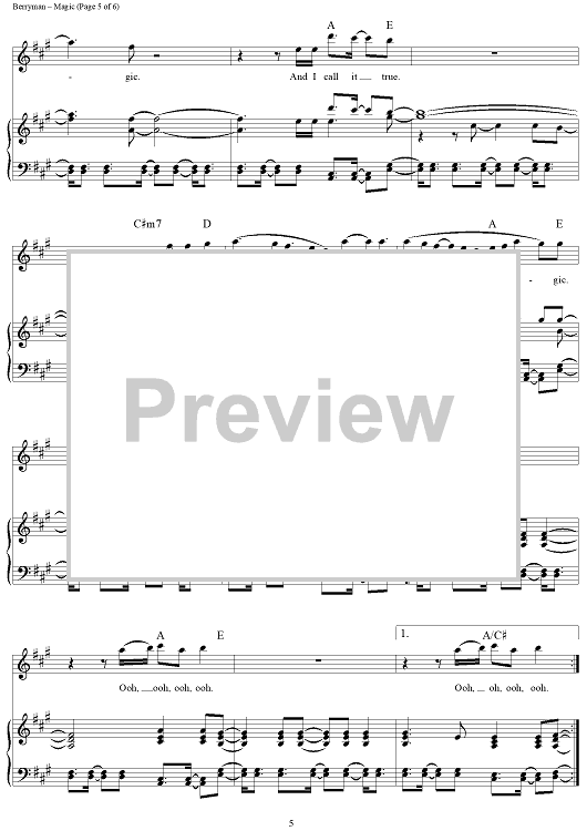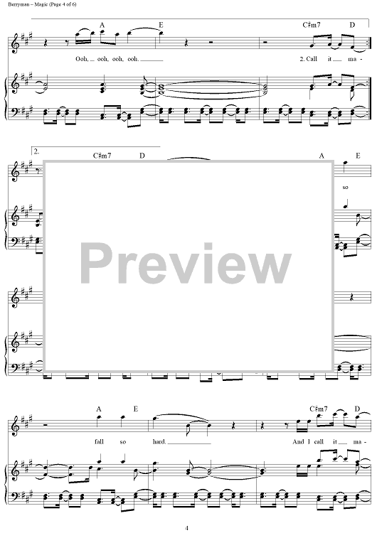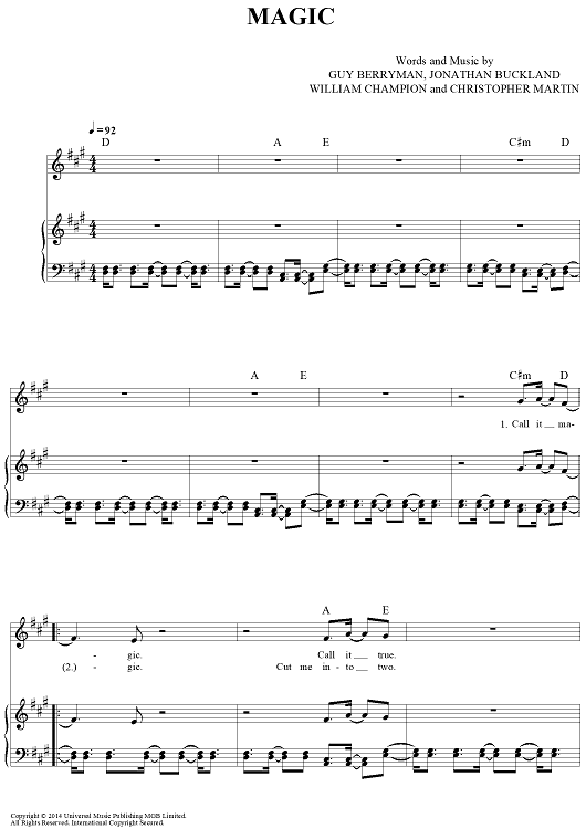 Digital Sheet Music for Magic by Chris Martin, Coldplay, Jonny Buckland, Guy Berryman scored for Piano/Vocal/Chords; id:444899