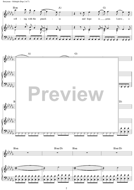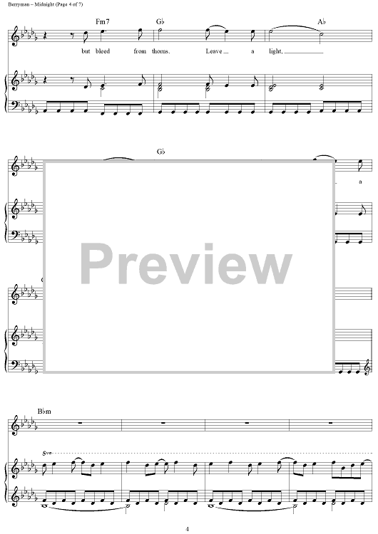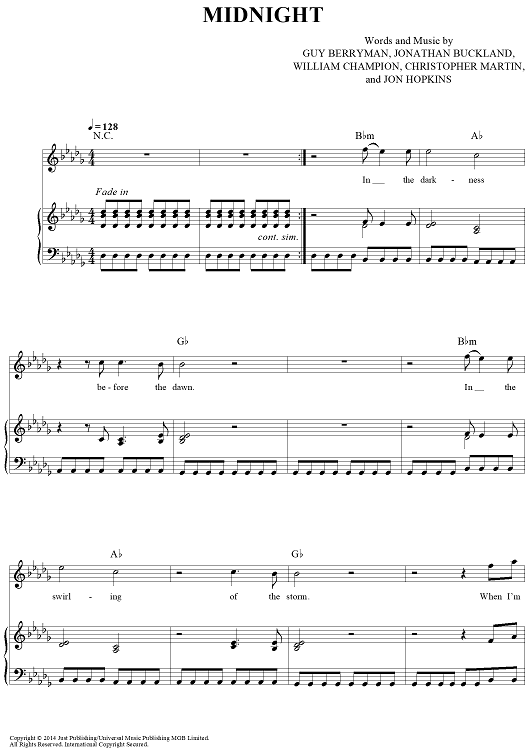 Digital Sheet Music for Midnight by Chris Martin, Coldplay, Jonny Buckland, Guy Berryman, John Henry Hopkins scored for Piano/Vocal/Chords; id:444900