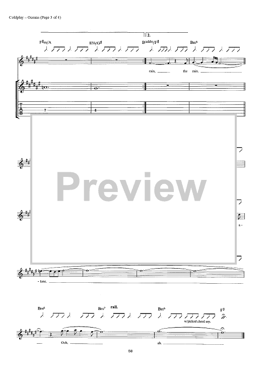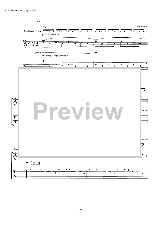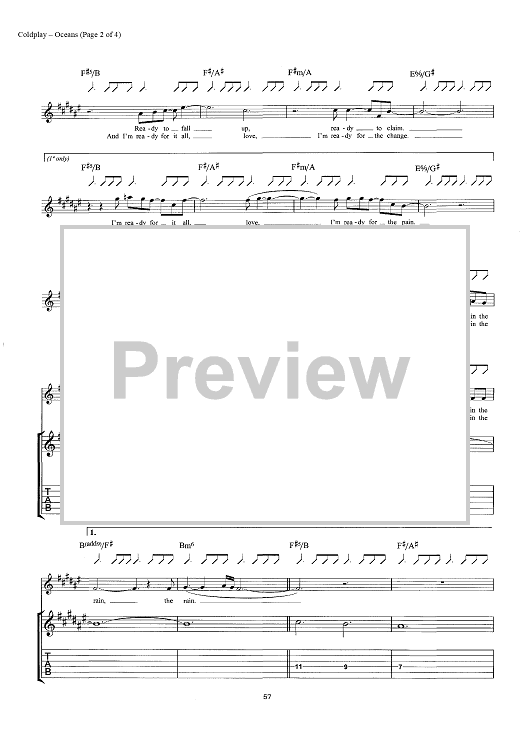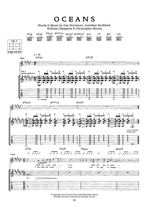 Digital Sheet Music for Oceans by Chris Martin, Coldplay, Jonny Buckland, Guy Berryman, John Henry Hopkins scored for Guitar Tab; id:444614