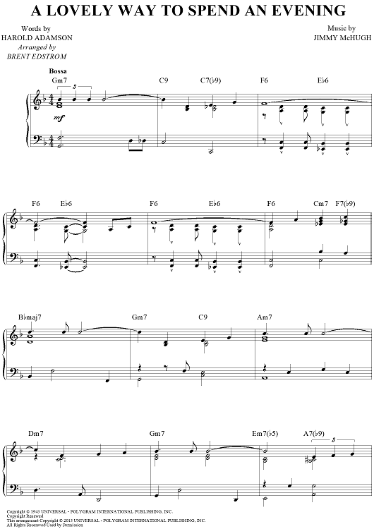 Digital Sheet Music for A Lovely Way To Spend An Evening by Jimmy McHugh, Harold Adamson, Brent Edstrom scored for Piano Solo; id:464825