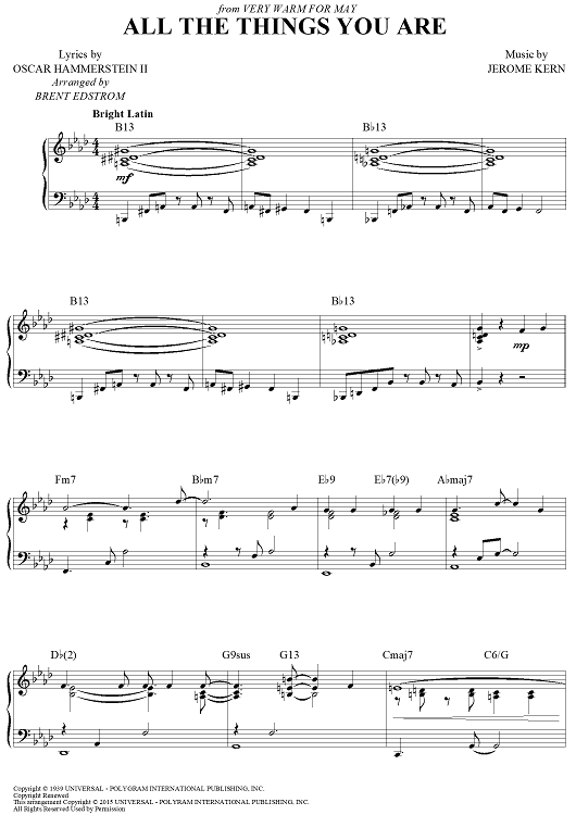 Digital Sheet Music for All The Things You Are by Jerome Kern, Oscar Hammerstein II, Brent Edstrom scored for Piano Solo; id:460016