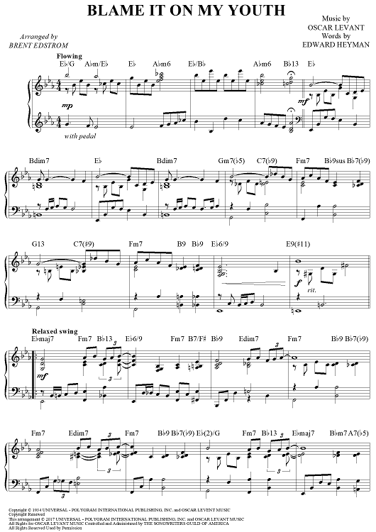 Digital Sheet Music for Blame It On My Youth by Edward Heyman, Oscar Levant, Brent Edstrom scored for Piano Solo; id:465456