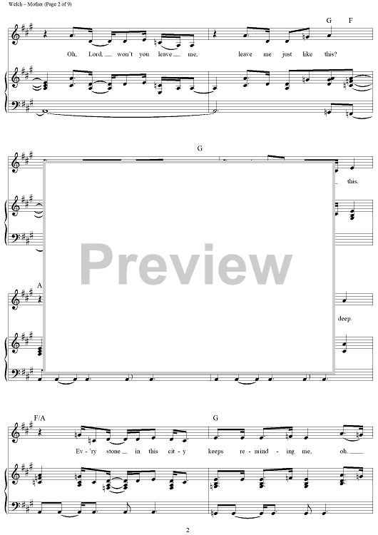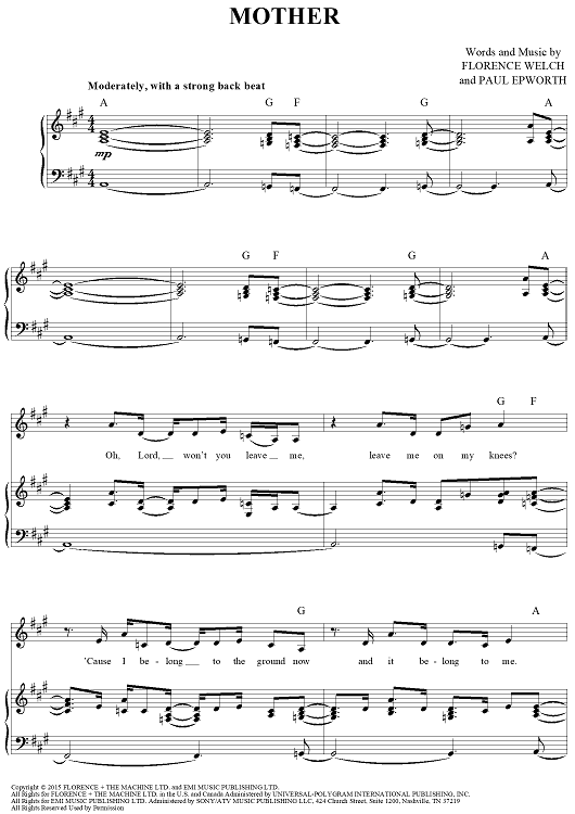 Digital Sheet Music for Mother by Paul Epworth, Florence Welch, Florence and the Machine scored for Piano/Vocal/Chords; id:461823