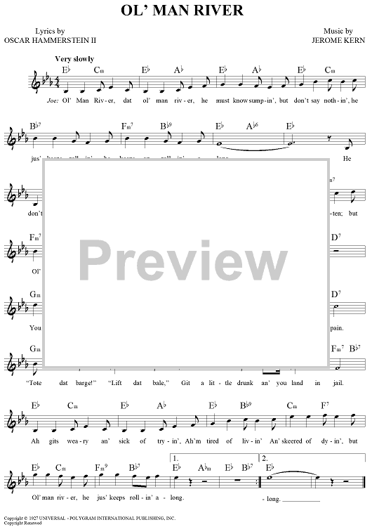 Digital Sheet Music for Ol' Man River by Jerome Kern, Oscar Hammerstein II scored for Lead Sheet; id:457075