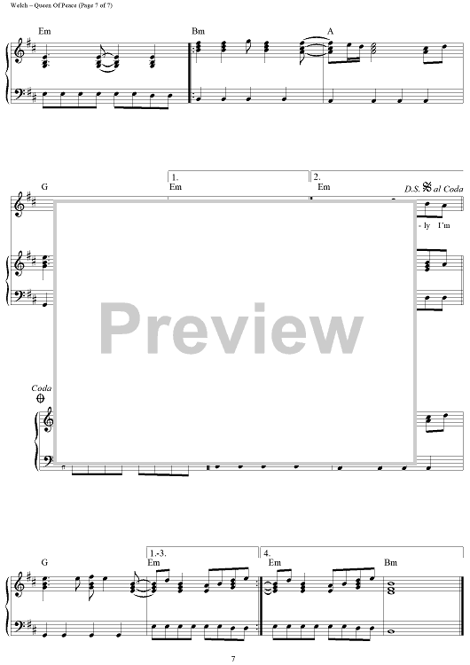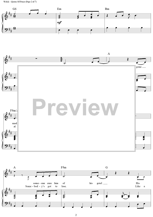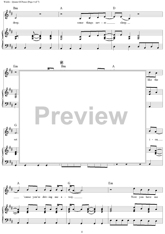 Digital Sheet Music for Queen of Peace by Florence Welch, Florence and the Machine, Marcus Dravs scored for Piano/Vocal/Chords; id:459103