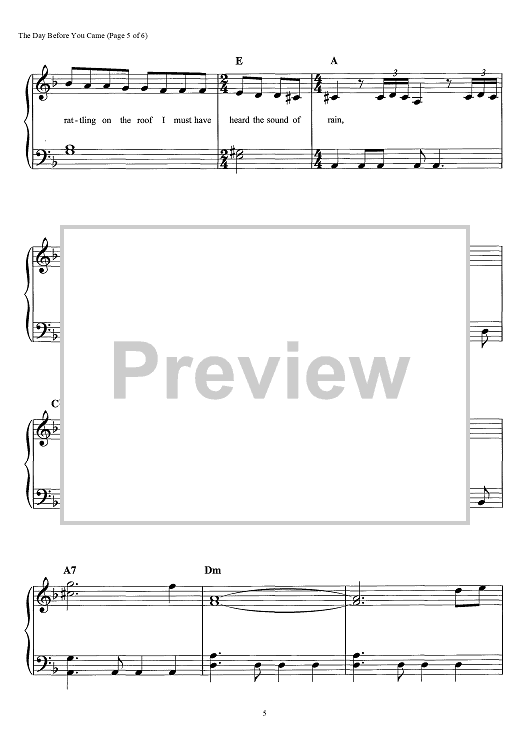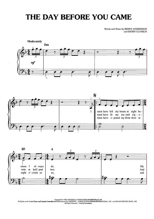 Digital Sheet Music for The Day Before You Came - from Mamma Mia! Here We Go Again by ABBA, Benny Andersson, Bjorn Ulvaeus scored for Easy Piano/Vocal/Chords; id:466772