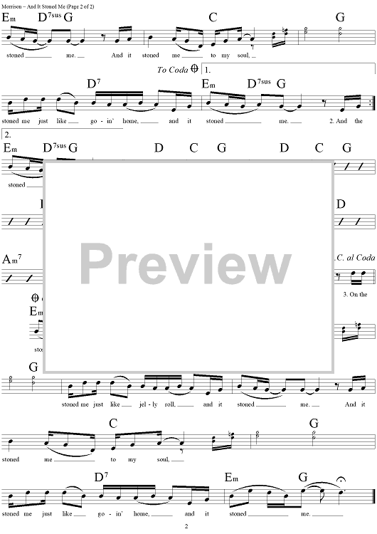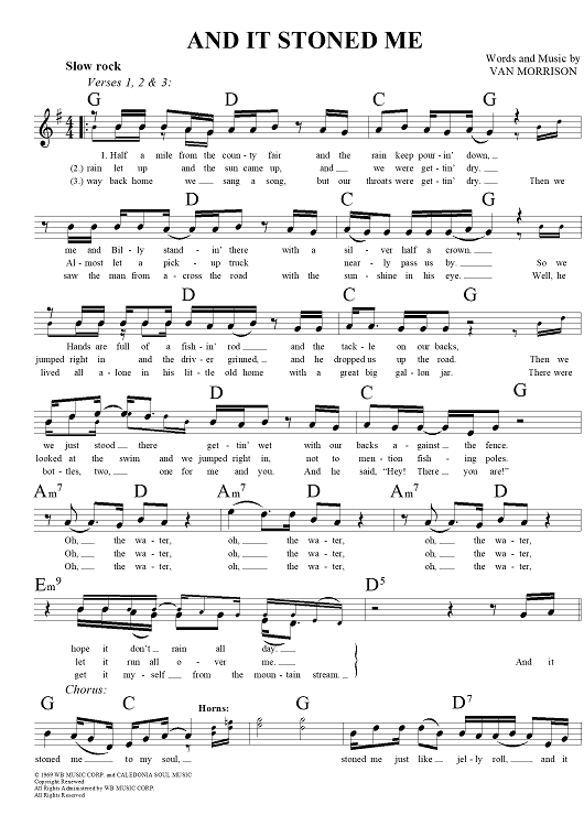 Digital Sheet Music for And It Stoned Me by Van Morrison scored for Lead Sheet; id:293841