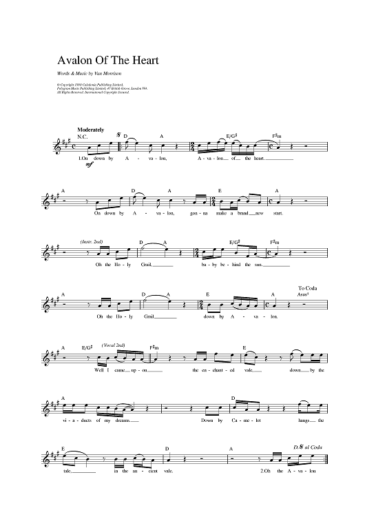"Avalon of The Heart" Sheet Music by Van Morrison