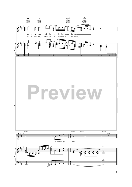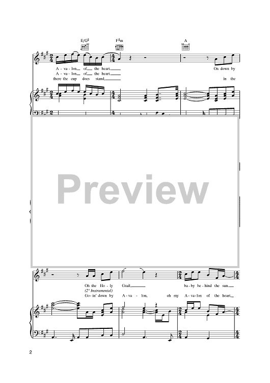 Digital Sheet Music for Avalon Of The Heart by Van Morrison scored for Piano/Vocal/Chords; id:386825