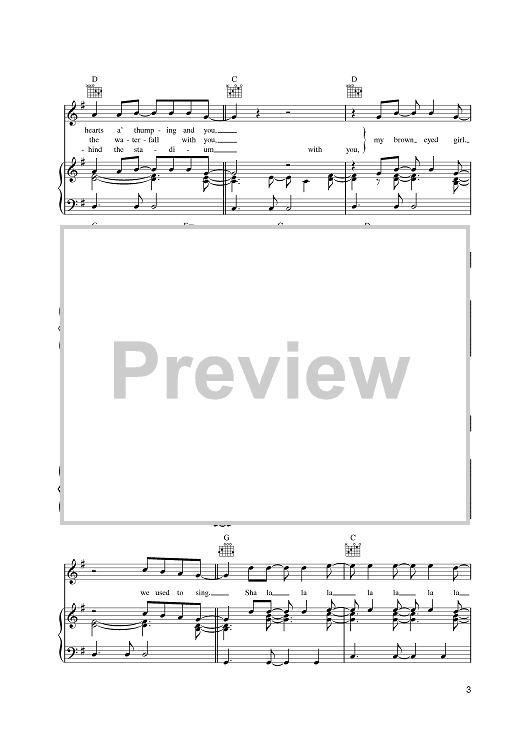 Digital Sheet Music for Brown Eyed Girl by Van Morrison scored for Piano/Vocal/Chords; id:386829