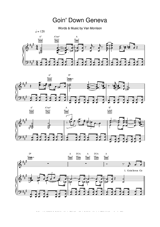 Digital Sheet Music for Goin' Down Geneva by Van Morrison scored for Piano/Vocal/Chords; id:379939