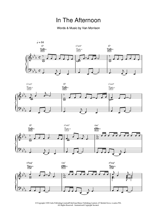 Digital Sheet Music for In The Afternoon by Van Morrison scored for Piano/Vocal/Chords; id:376059