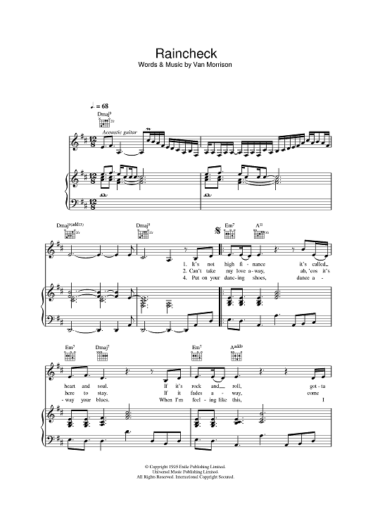 "Raincheck" Sheet Music by Van Morrison