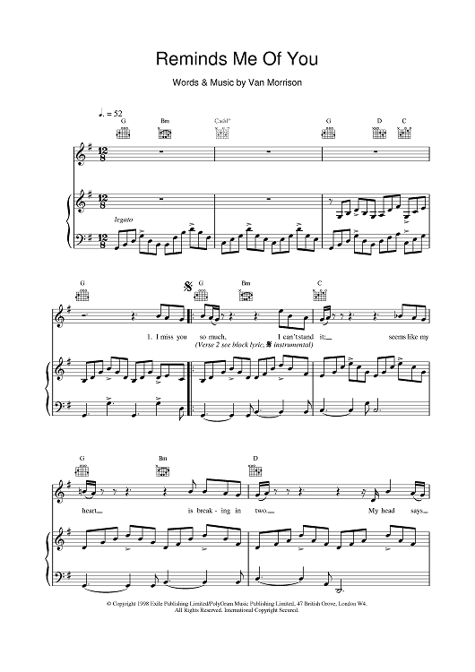 Digital Sheet Music for Reminds Me Of You by Van Morrison scored for Piano/Vocal/Chords; id:376808