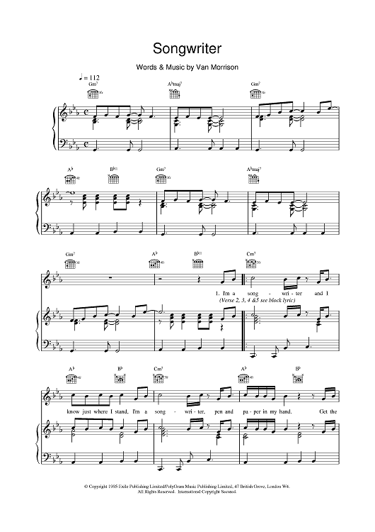 Digital Sheet Music for Songwriter by Van Morrison scored for Piano/Vocal/Chords; id:376055