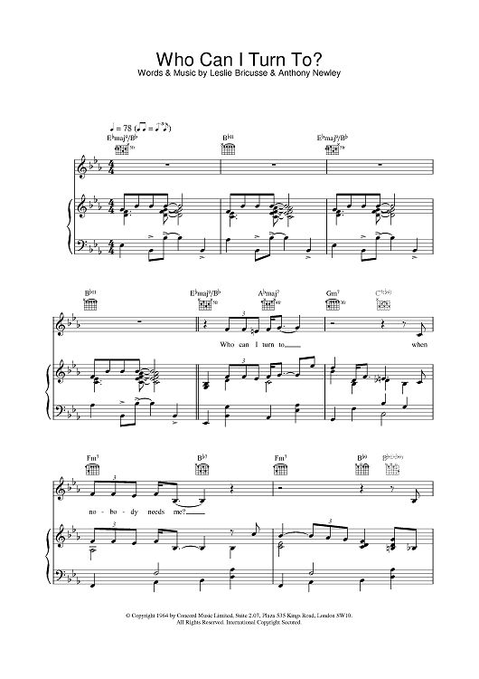 Digital Sheet Music for Who Can I Turn To? by Van Morrison scored for Piano/Vocal/Chords; id:378935
