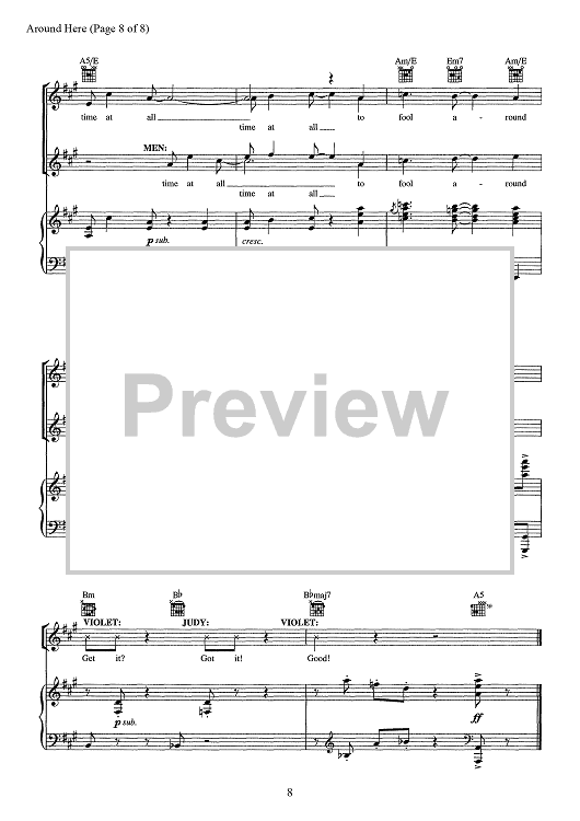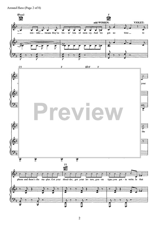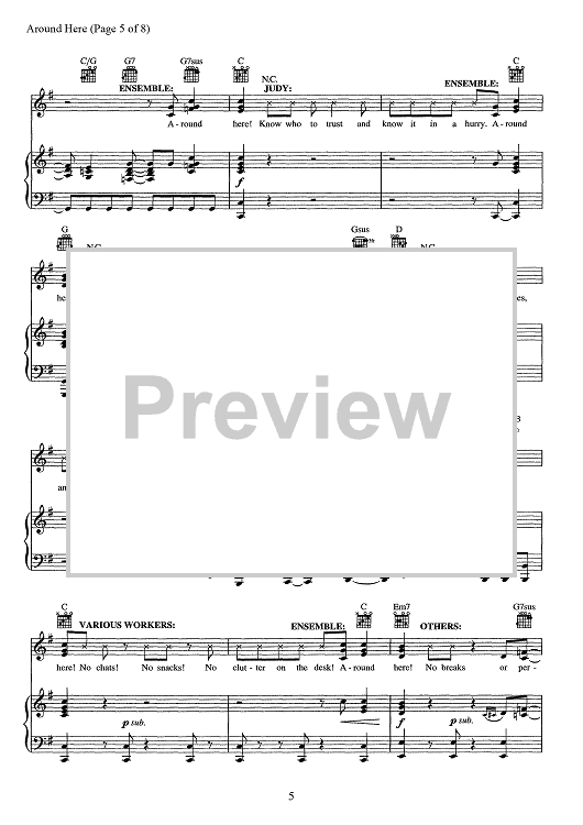 Digital Sheet Music for Around Here - from 9 To 5 The Musical by Stephen Oremus, Dolly Parton scored for Piano/Vocal/Chords; id:467506