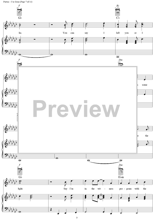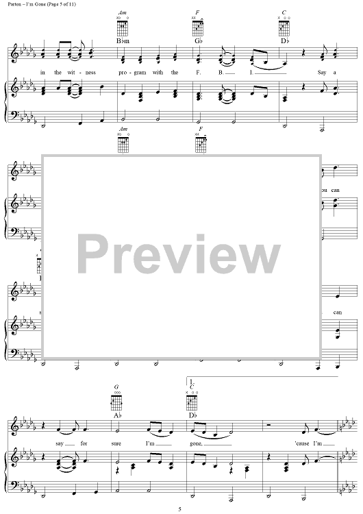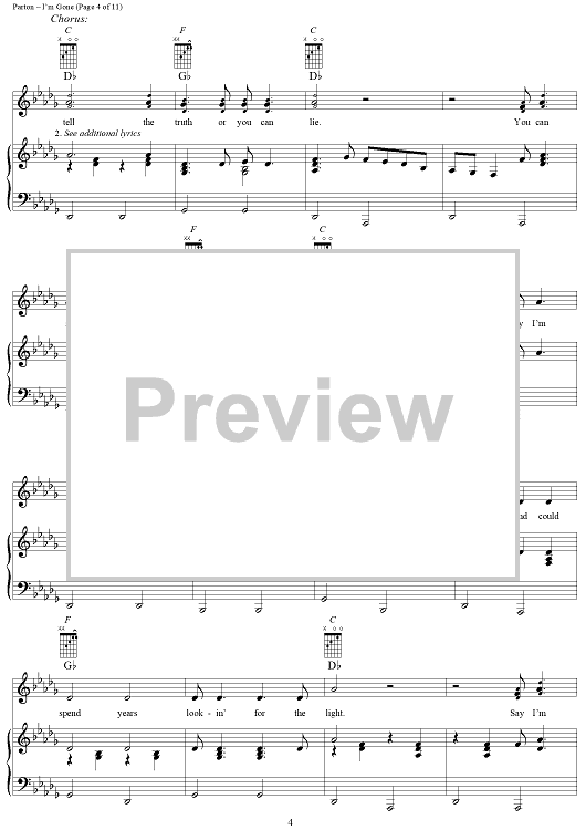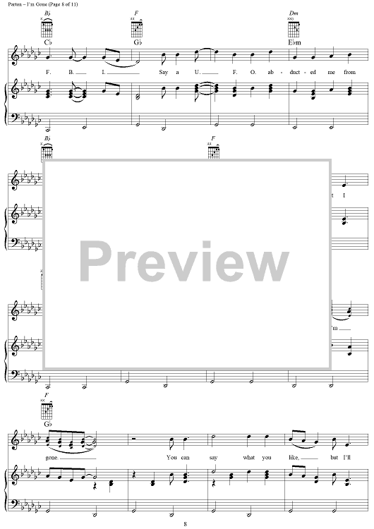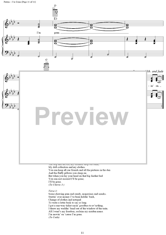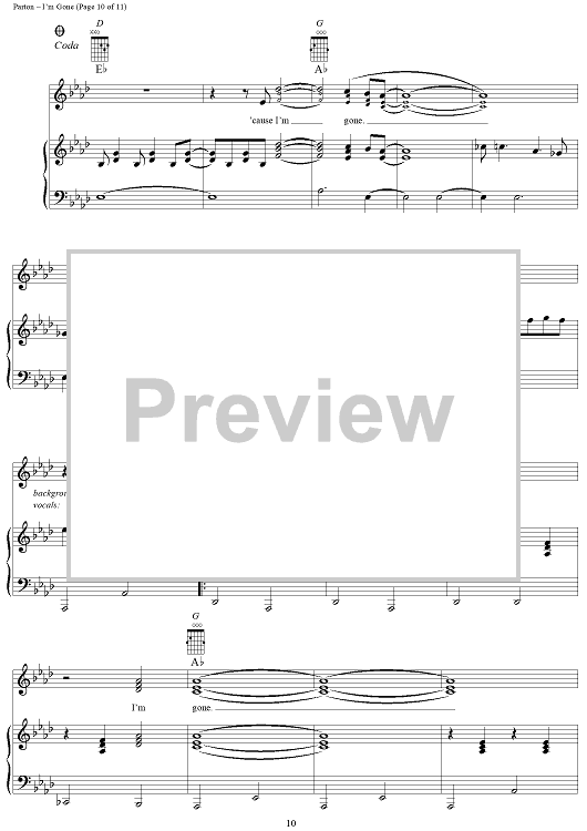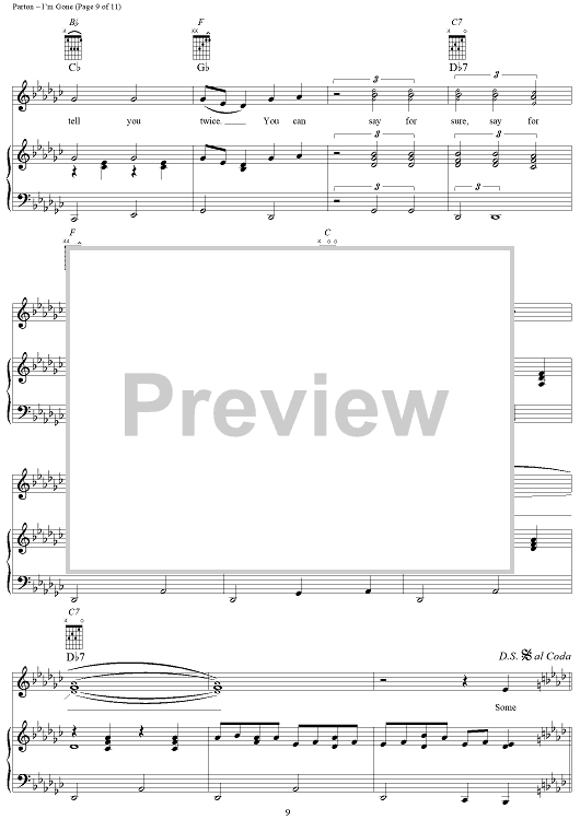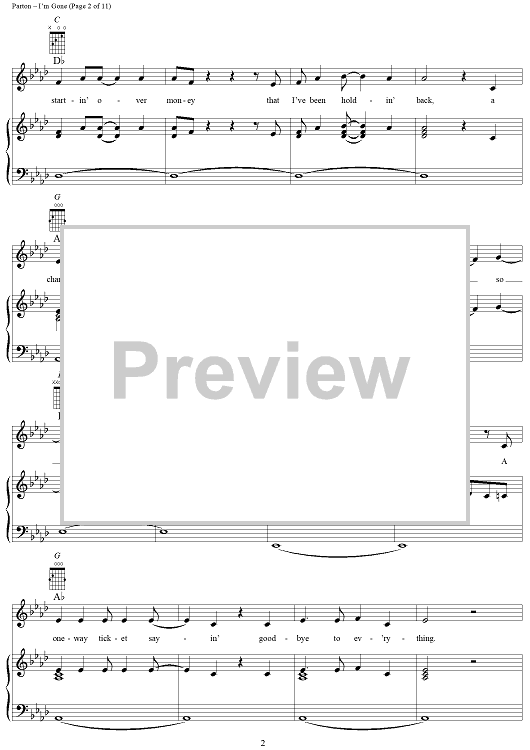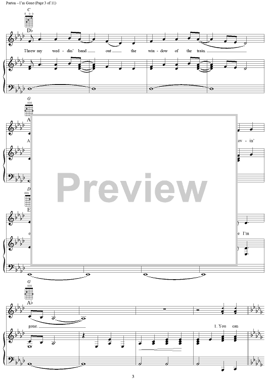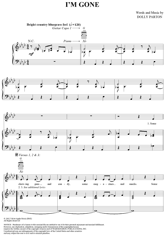 Digital Sheet Music for I'm Gone by Dolly Parton scored for Piano/Vocal/Chords; id:293461