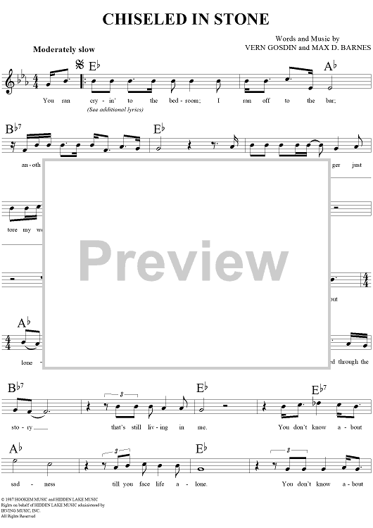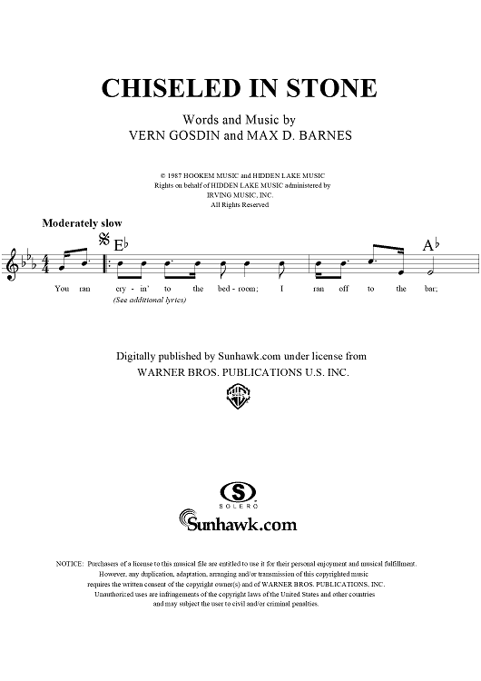 Digital Sheet Music for Chiseled in Stone by Vern Gosdin, Max D. Barnes scored for Lead Sheet; id:154951