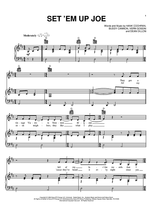 Digital Sheet Music for Set 'Em Up Joe by Vern Gosdin, Dean Dillon, Buddy Cannon, Hank Cochran scored for Piano/Vocal/Chords; id:397887