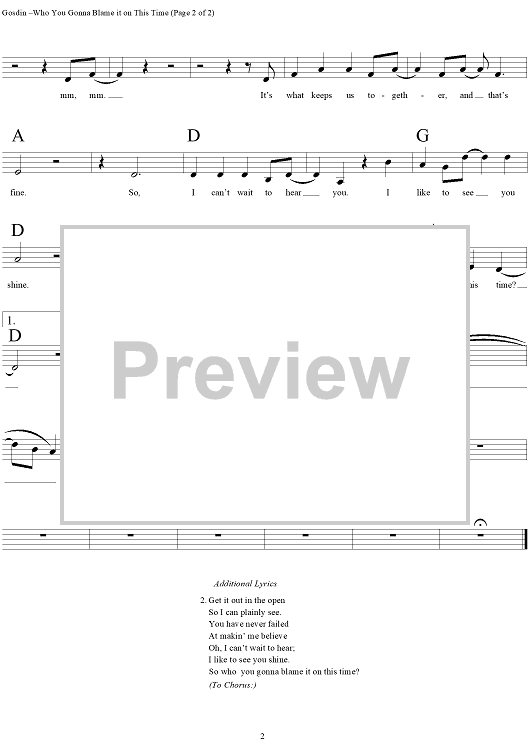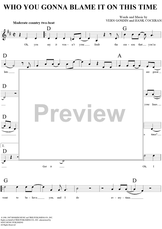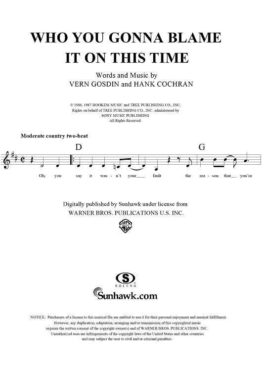 Digital Sheet Music for Who You Gonna Blame it on This Time by Vern Gosdin, Hank Cochran scored for Lead Sheet; id:268243
