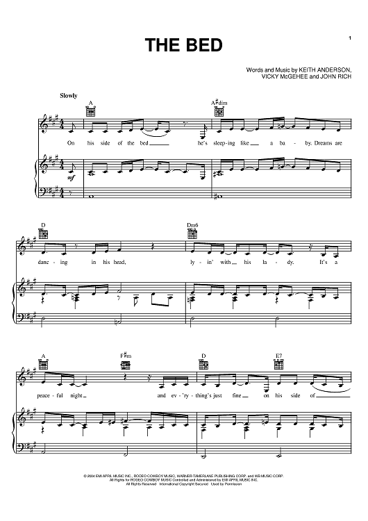 Digital Sheet Music for The Bed by Bob Andy, John Rich, Gretchen Wilson, Vicky McGehee scored for Piano/Vocal/Chords; id:379506