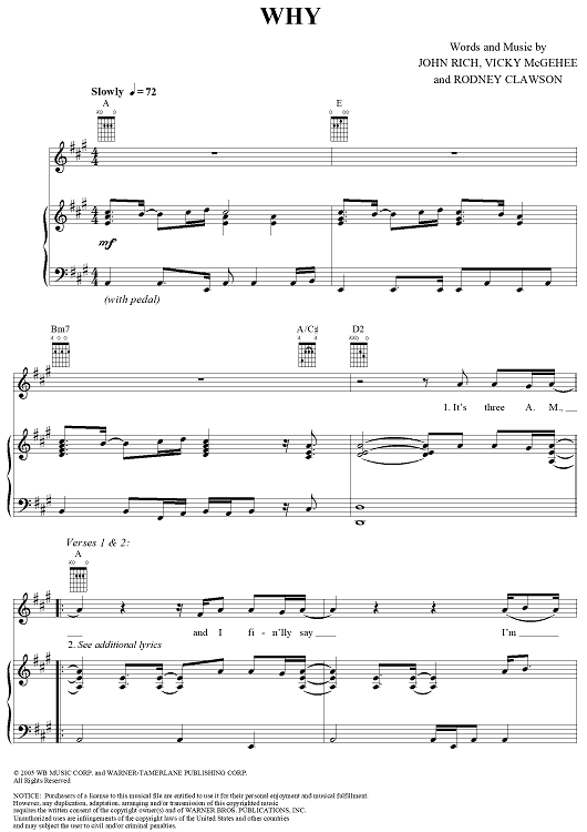 Digital Sheet Music for Why by John Rich, Vicky McGehee, Jason Aldean, Rodney Clawson scored for Piano/Vocal/Chords; id:318185