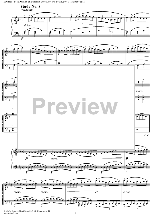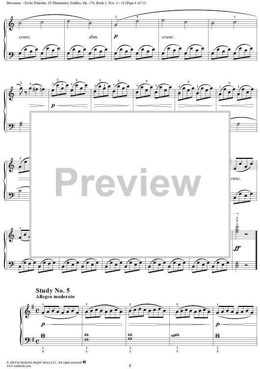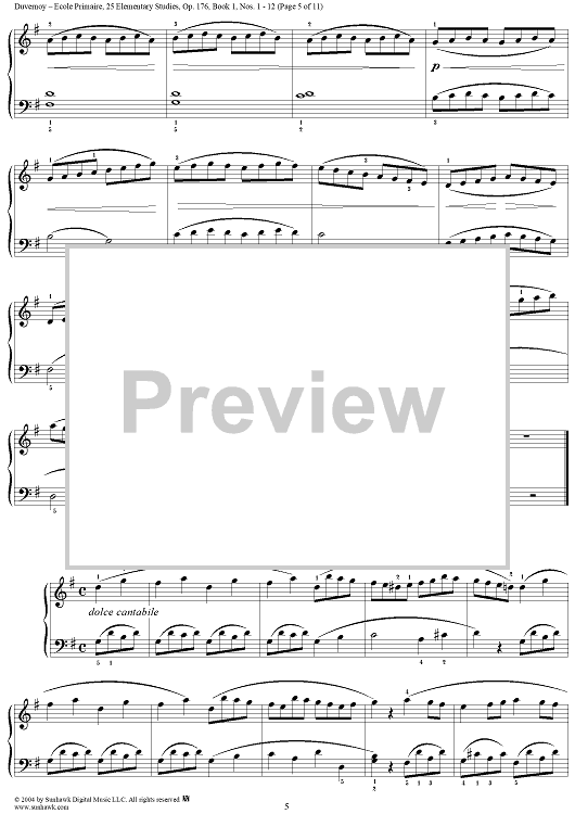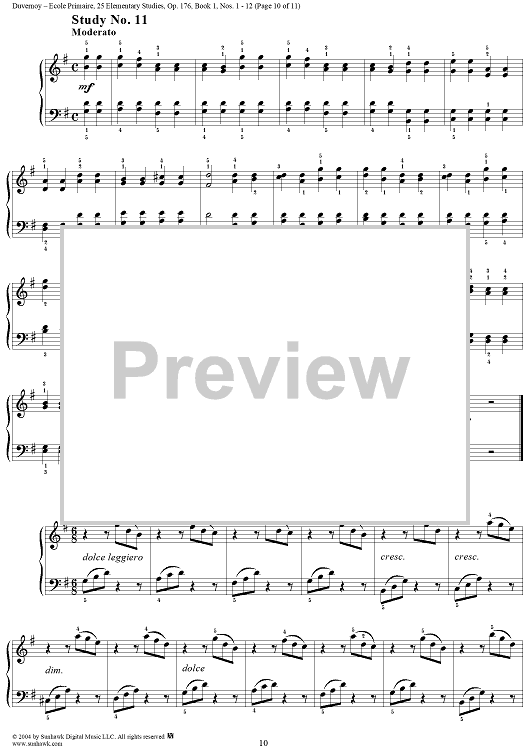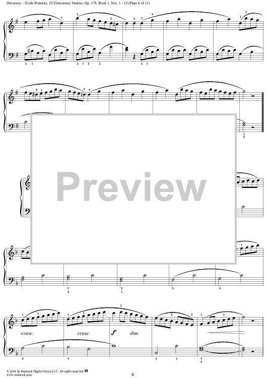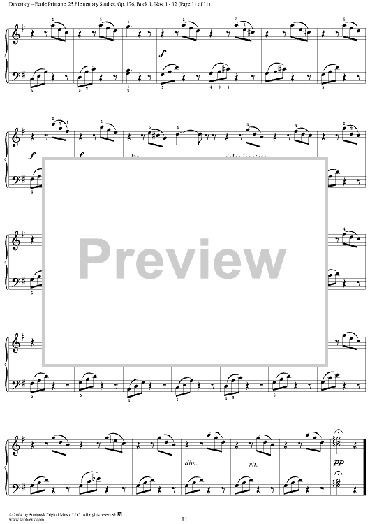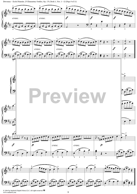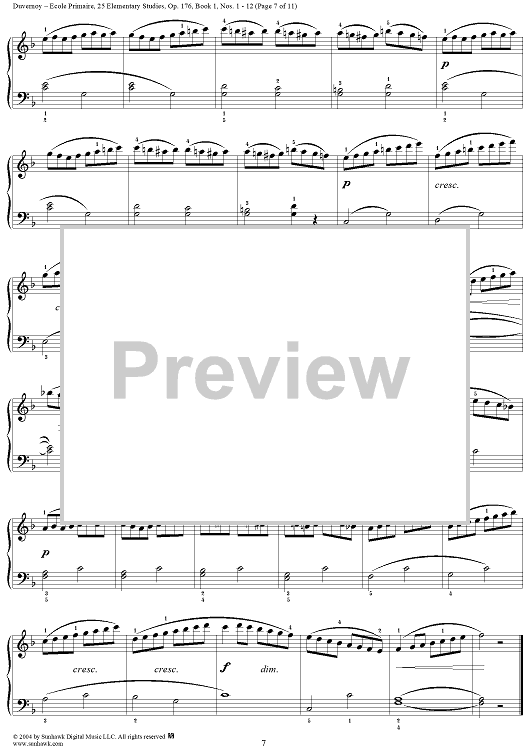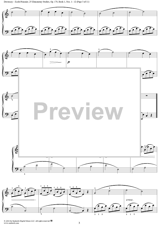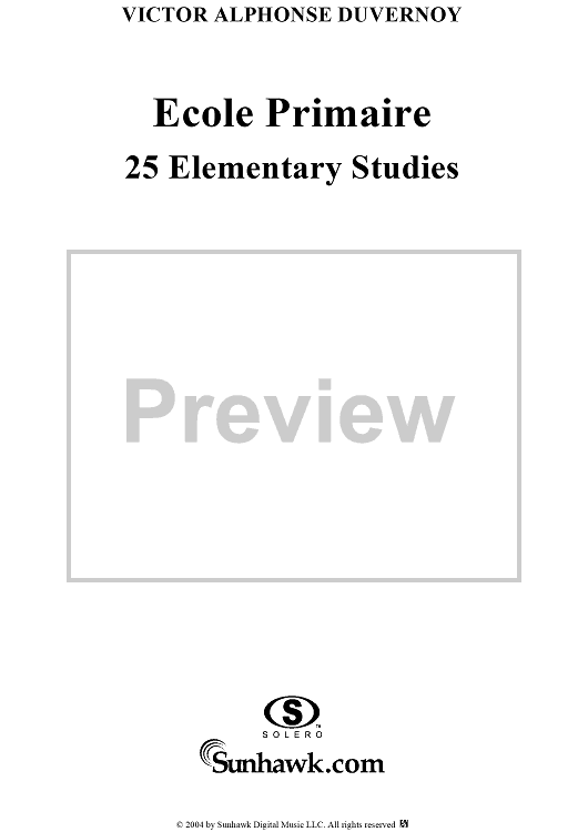 Digital Sheet Music for École Primaire, Twenty-Five Elementary Studies, Op. 176, Book 1, Nos. 1 - 12 by Victor Alphonse Duvernoy scored for Piano Solo; id:296113