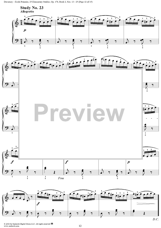 "École Primaire, Twenty-Five Elementary Studies, Op. 176, Book 2, Nos. 13 - 25" Sheet Music by Victor Alphonse Duvernoy