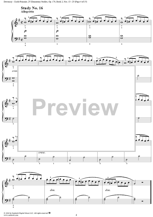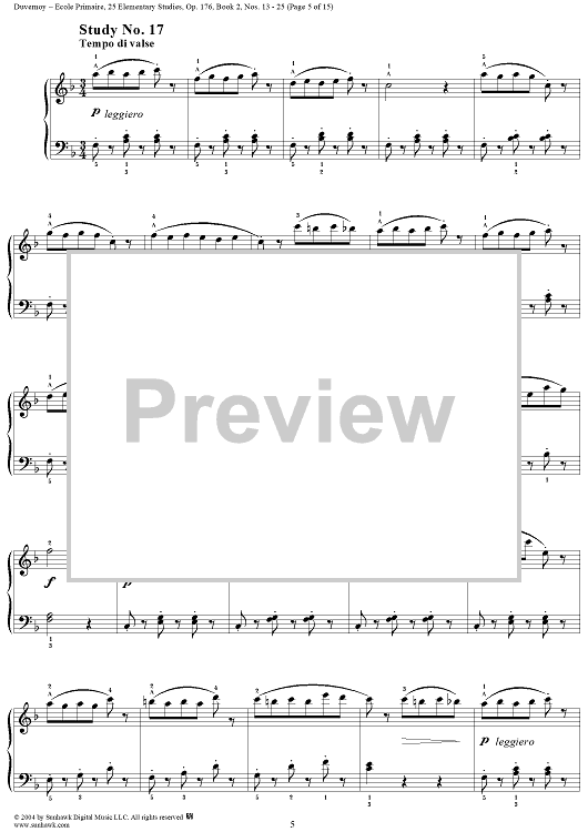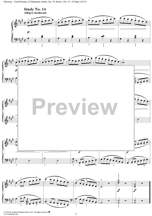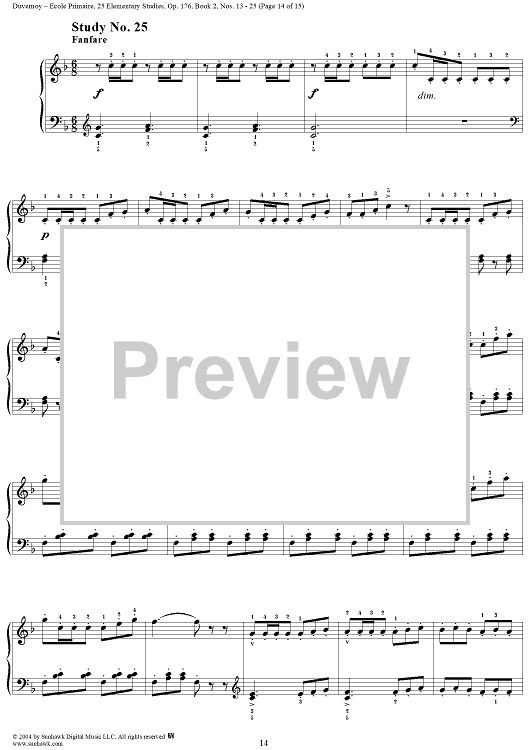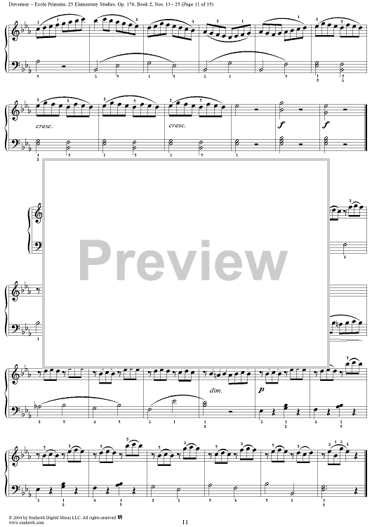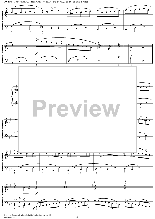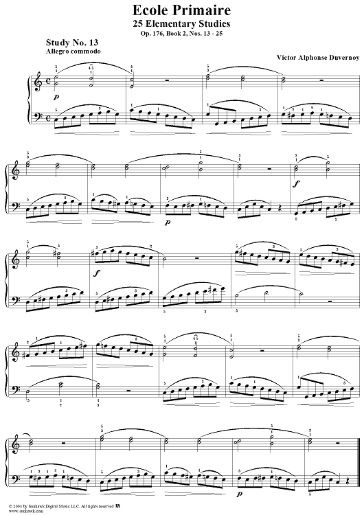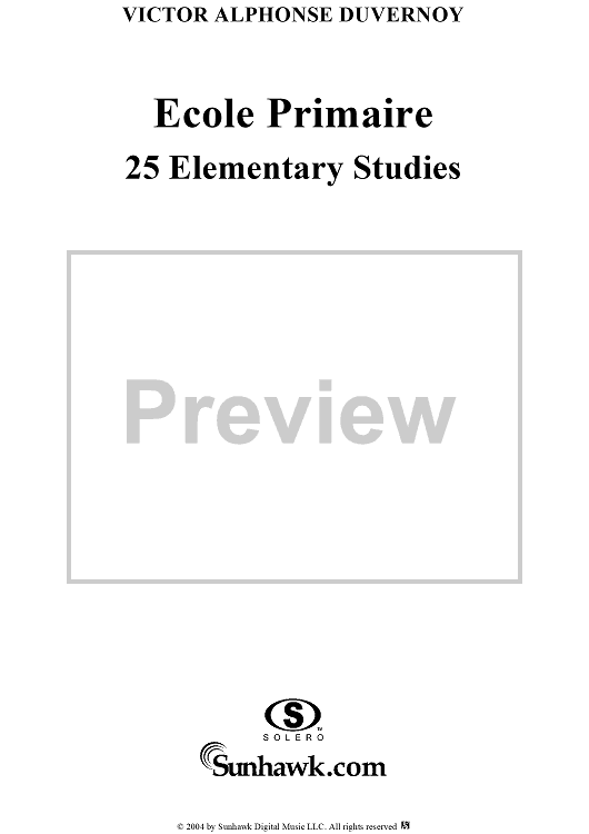 Digital Sheet Music for École Primaire, Twenty-Five Elementary Studies, Op. 176, Book 2, Nos. 13 - 25 by Victor Alphonse Duvernoy scored for Piano Solo; id:296114