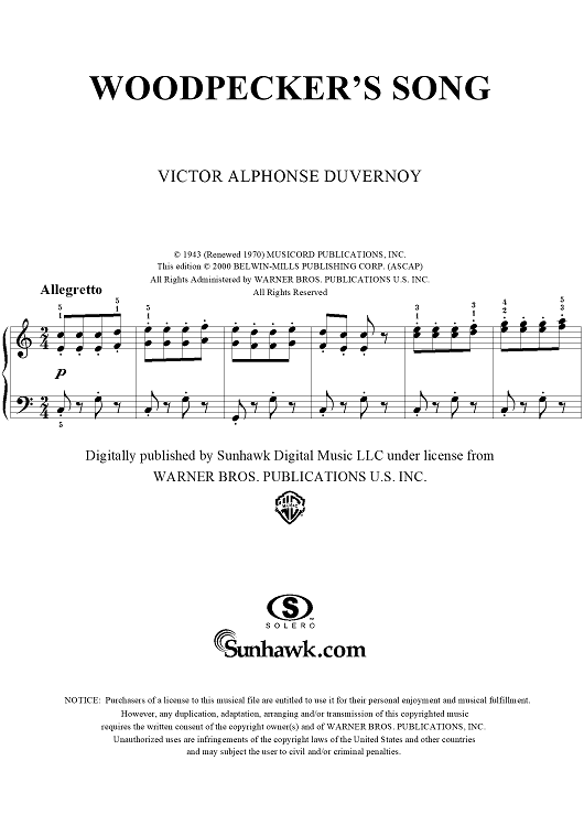 "Woodpecker's Song" Sheet Music by Victor Alphonse Duvernoy