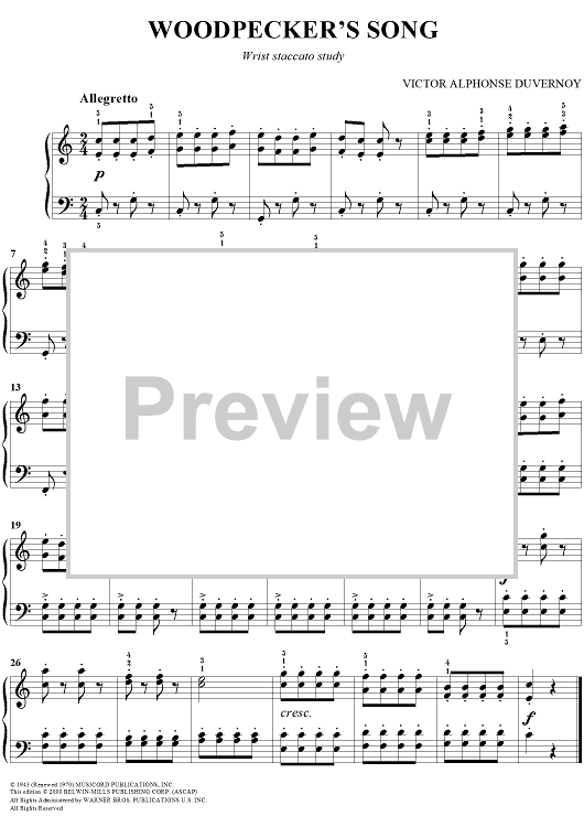 Digital Sheet Music for Woodpecker's Song by Victor Alphonse Duvernoy scored for Easy Piano; id:295705