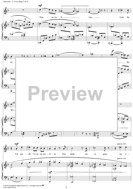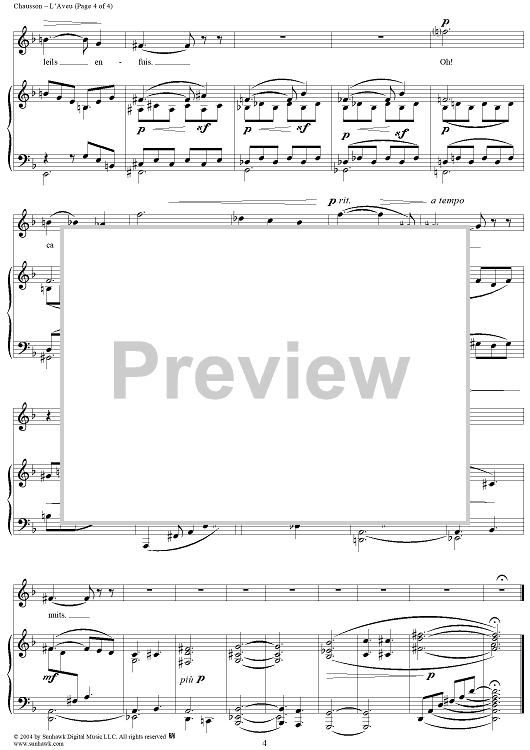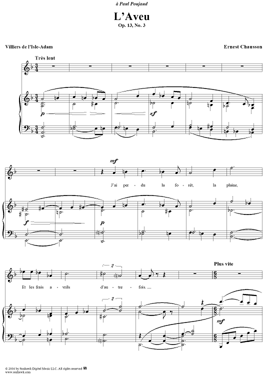 Digital Sheet Music for L'Aveu, Op. 13, No. 1 by Ernest Chausson, Villiers de l'Isle-Adam scored for Voice/Piano; id:303395