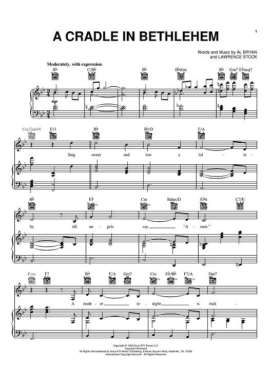 Digital Sheet Music for A Cradle In Bethlehem by Vince Gill, Alfred Bryan, Lawrence Stock scored for Piano/Vocal/Chords; id:369395