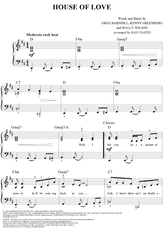 Digital Sheet Music for House of Love by Dan Coates, Vince Gill, Kenny Greenberg, Wally Wilson, Greg Barnhill, Amy Grant scored for Easy Piano/Vocal; id:292386