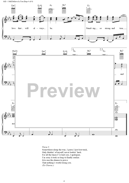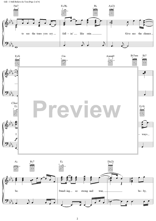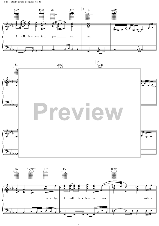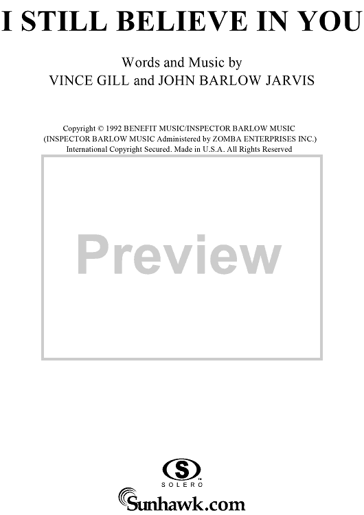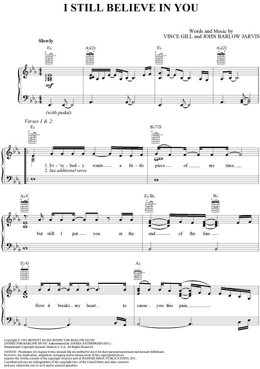 Digital Sheet Music for I Still Believe In You by Vince Gill, John Jarvis scored for Piano/Vocal/Chords; id:119690