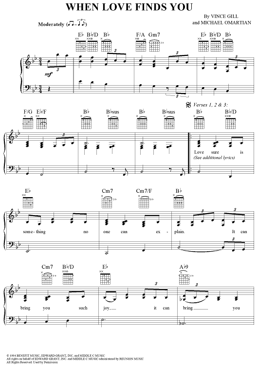 Digital Sheet Music for When Love Finds You by Vince Gill, Michael Omartian scored for Piano/Vocal/Chords; id:119689