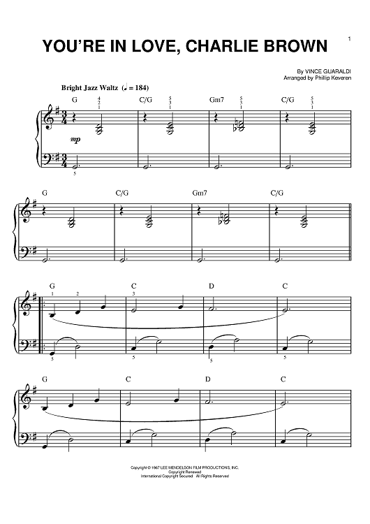 Digital Sheet Music for You're In Love, Charlie Brown by Vince Guaraldi, Phillip Keveren scored for Easy Piano; id:392189