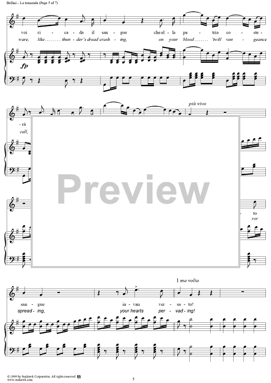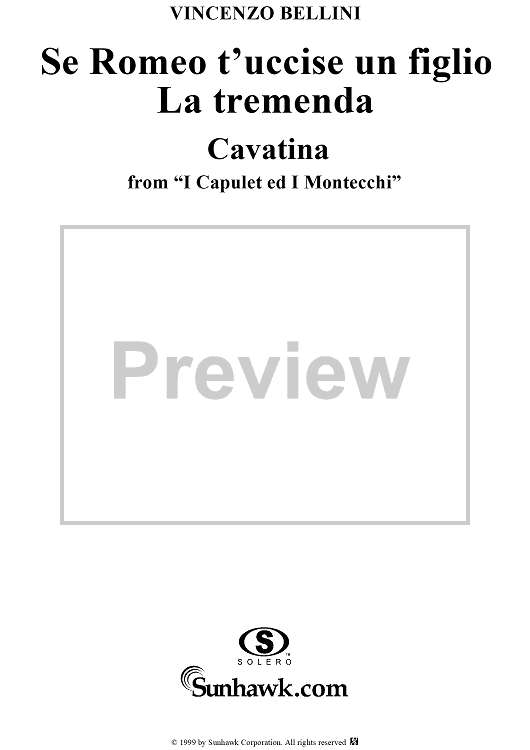 Digital Sheet Music for I Capulet ed I Montecchi, "Se Romeo t'uccise un figlio" (If Romeo thy son did slaughter) by Vincenzo Bellini scored for Voice/Piano; id:273463