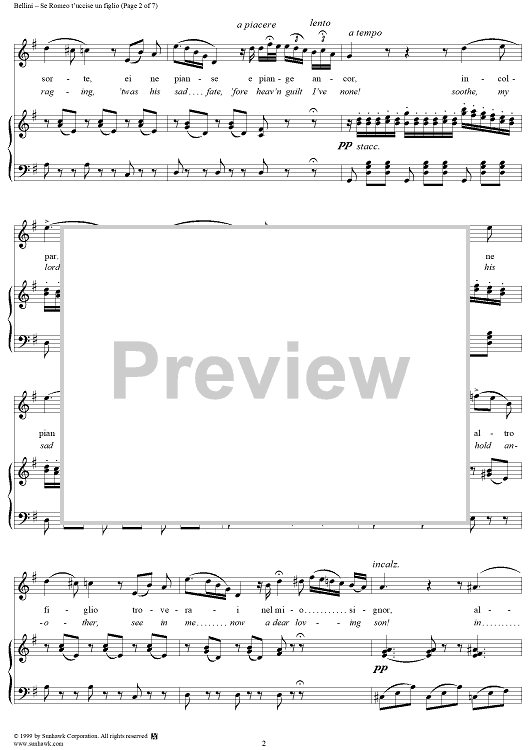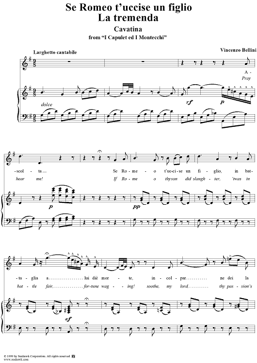 "I Capulet ed I Montecchi, "Se Romeo t'uccise un figlio" (If Romeo thy son did slaughter)" Sheet Music by Vincenzo Bellini