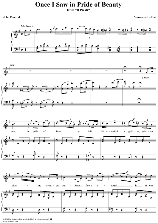 Digital Sheet Music for Once I saw in pride of beauty by Vincenzo Bellini, J. G. Percival scored for Voice/Piano; id:265762