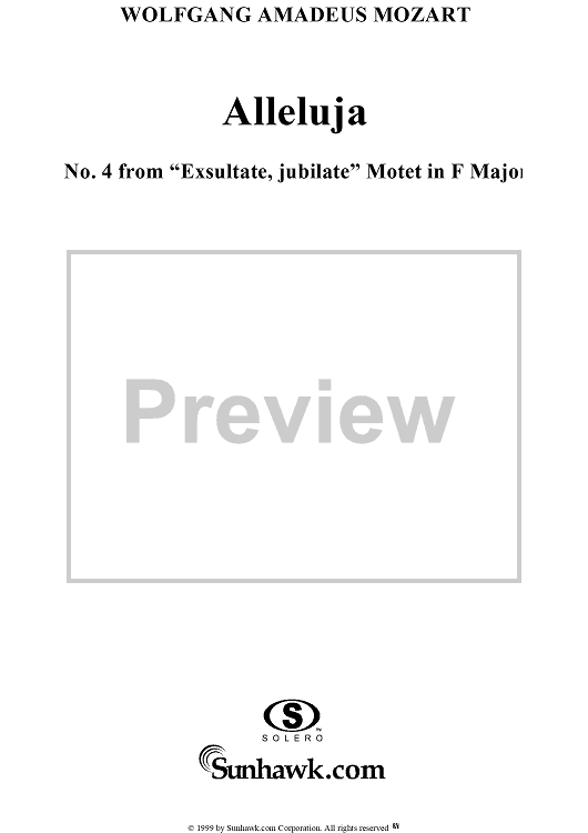 "Alleluja No. 4 from "Exsultate, jubilate" Motet in F major K158a (K165)" Sheet Music by Wolfgang Amadeus Mozart